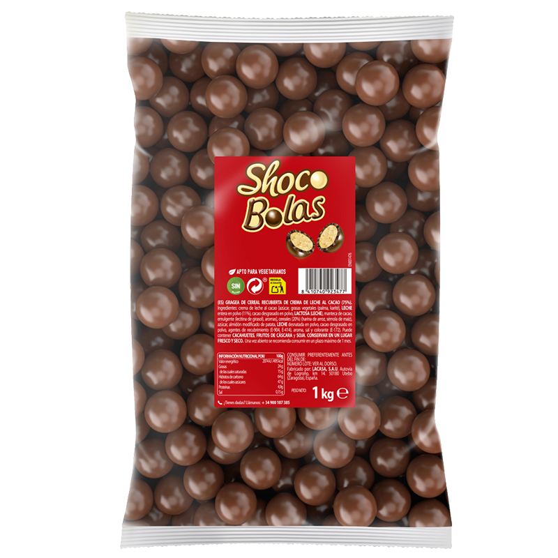 Mjölkgrädde med kakao (socker, vegetabiliska fetter (palm, shea), helmjölkspulver (11 %), fettreducerat kakaopulver, laktos (mjölk), kakaosmör, (emulgeringsmedel solroslecitin), aromer), spannmål (20 %), ringformat mjöl, majssemolina), socker, modifierad potatisstärkelse, skummjölkspulver, fettreducerat kakaopulver, ytbehandlingsmedel (E904, E414), aromämne, salt och färgämne (E172). Kan innehålla jordnötter, trädnötter och soja.