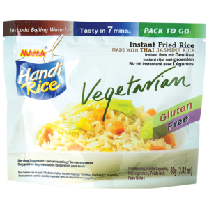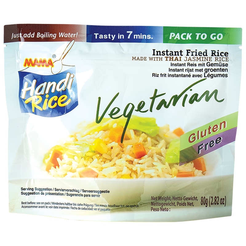 Torkat jasminris 75%, torkade grönsaker (morot, kål, sötmajs) 10%, palmolja, socker, kryddor (vitlök, SELLERI, peppar), salt, smakförstärkare E621; E635, svamppulver, jästextrakt, arom