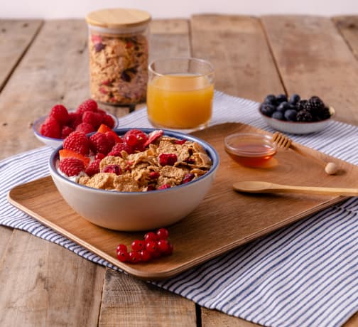 Ris 69,5 %, socker, röda frukter 5 % (jordgubbar, hallon och körsbär i varierande proportioner), majsstärkelse 3,6 %, salt, vitaminer (vitamin B1 (tiaminmononitrat), vitamin B2 (riboflavin), vitamin B3 (nikotinamid), vitamin B6 (pyridoxinhydroklorid), vitamin B9 (pteroylmonoglutaminsyra), vitamin B12 (cyanokobalamin), vitamin B5 (D-pantotenat, kalcium)), elementärt järn. Kan innehålla mjölk och mejeriprodukter.