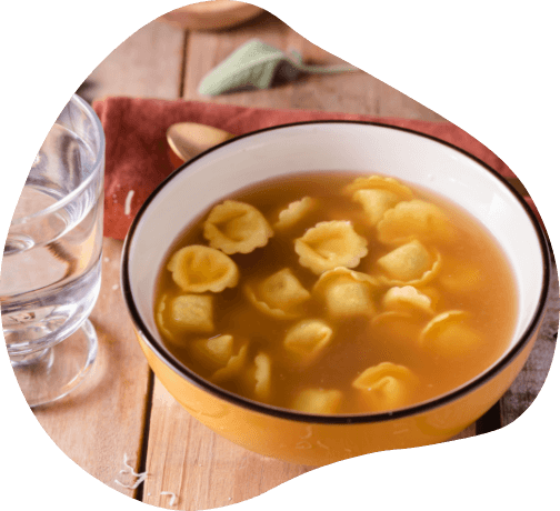 Rismjöl, majsstärkelse, frigående ägg 17 %, bräserat nötkött [färskt nötkött, ris, rismjöl, lök, morot, selleri , vegetabiliskt protein (ärtor), vin (innehåller sulfiter ), salt, vinäger, vitlök], äggvita, rå skinka 4,5 % (fläsk, salt), Grana Padano-ost (mjölk, salt, löpe, ägglysozym ) , salt, extra jungfruolja, vegetabilisk fiber (bambu, psyllium, ärtor), dextros, solrosolja, muskotnöt, aromer, förtjockningsmedel: xantangummi, guargummi, konserveringsmedel: kaliumsorbat. Kan innehålla fisk, nötter. Förpackad i skyddande atmosfär.