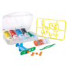 Set med mjuk modelleringsdeg, ”glutenfri”, 5 stycken 100 g vardera, blandade färger, med modelleringstillbehör och former, i återanvändbar PP-låda – Katt-sortiment.
