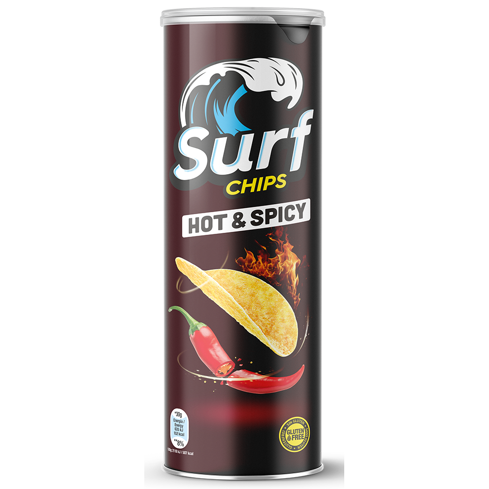 Uttorkade potatisflingor, palmolein (antioxidant: E320), varm och kryddig smaksatt kryddor [socker, salt, kryddor: vitpepparpulver, chilipulver, paprikasmak; dextros, smakförstärkare: E621, E627, E631; maltodextrin, konstgjorda smakämnen, antiklumpningsmedel: E341(iii), E551; SOJAsåspulver, surhetsreglerande medel: E330], tapiokastärkelse, emulgeringsmedel: E471, E322 (SOJA)